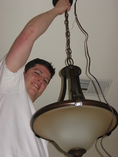 Remember all my lamenting in my previous post about how Ryan and I were not handy and how we were a little overwhelmed by the idea of changing out our ceiling light fixtures?? Well, I started to put the lights together at the end of last week and that turned out to be the most complicated part. Believe it or not Ryan and I got all three light fixtures hung by Sunday night. I won't confess just how long it took us, but we both felt great that we accomplished this little project together. And it only took one phone call to my brother, Tim!
